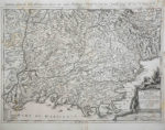 Éditée à Rome en 1690 sur papier vergé. Provence, Camargue, Côtes de Marseille à Vintimille. Beau cartouche. Mouillures. Déchirures dans les marges. Dimensions : 43,5 x 58 cm (plaque) ; 50 x 63,5 cm (feuille).