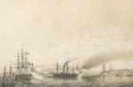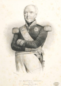 TROIS GRAVURES DU XIXe SOUS ENCADREMENTS (provenance ancienne collection de la Chambre de Commerce de Marseille) — Portraits du Maréchal Bugeaud et de Mahé de la Bourdonnais, Vue du bombardement de Salé 1851.