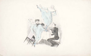 [DESSINS] — [CURIOSA] — Ensemble de 6 dessins aquarellés érotiques antireligieux et un dessin sur carton, dont 1 avec timbre sec “A. B. Paris”.