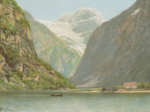 NORVÈGE, Album Kodak Souvenirs in-4 oblong (23x30cm), fin XIXe — 46 chromolithographies paysages et types d’après de grands peintres Norvégiens, divers formats.