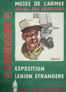 [LÉGION ÉTRANGÈRE] — AFFICHE – CAMERONE 1863-1963 — Affiche originale de l’exposition au Musée des Armée, Hôtel des Invalides. — Tirée sur les presses « Képi Blanc ». — Dimensions : 63,5 x 47,5 cm.