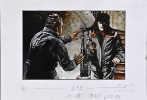 [ILLUSTRATIONS] — PAU, Jean Marc (1965) — Illustration originale sur le thème de l’affaire Ali Mecili (2009) pour le Nouvel Observateur. — Encre de Chine et aquarelle sur papier cartonné. — Dimensions : 27,8 x 19,8 cm.