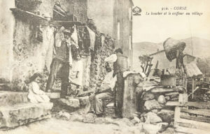 [CORSE] — [CPA]1 CPA CORSE - TOP COLLECTION — Le boucher et le coiffeur au village, Corse.