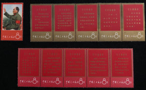 CHINE 1967 : Série Mao, Mi 966/976**, MNH, bandes pliées, couleur or irrégulière à étudier.