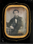[DAGUERREOTYPE] — DESMONTS à Marseille, portraits d’homme c.1860 — Deux daguerréotypes quart de plaque dans leurs montages d’origine, avec nom et adresses du studio imprimés au verso sur les montages «
