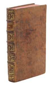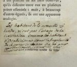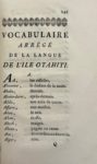Paris, Saillant et Nyon, 1772 ; in-8 (192 x 121 mm), veau marbré, dos à nerfs orné de fleurons dorés (Reliure de l'époque). Première édition française. Banks et Solander qui avaient participé à la première expédition de Cook en 1768-1771 en tant que naturalistes (Banks l'avait aussi généreusement financée), donnent ici leur journal de route et un compte-rendu de leurs découvertes en matière d'histoire naturelle et de mœurs, en particulier en Nouvelle Zélande (anthropophages) et à Tahiti. Un papillon manuscrit collé p.187 (détachable) modifie habilement un passage relatif à la circoncision pratiquée dans cette île pour l'adapter à la lecture de jeunes lecteurs (ou lectrices). Bien complet du Vocabulaire de la langue de l'île Otahiti (10 pp.).