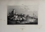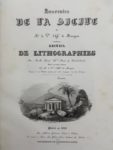 Orléans et Paris, Gatineau, 1836 ; grand in-4 (337 x 254 mm), demi-veau olive, dos lisse orné de fers dorés (Reliure de l'époque). Une grande vignette et 24 belles planches lithographiées d'après les dessins de l'auteur : Taormina, Palerme, Agrigente, le Stromboli, Catane.... L'une d'elles figure Morogues, son carton à dessin sous le bras, s'apprêtant à dessiner les colonnes effondrées des temples de Selinonte et la grande vignette du titre le montre, appuyé sur sa canne de marche devant des ruines, recevant des explications d'un vieil ermite. Probablement tiré à petit nombre. 2 ex. seulement au CCFR (BNF et Orléans), tous deux incomplets des planches.