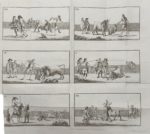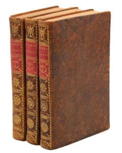 Paris, chez l'auteur, an V-1797 ; 3 vol. in-8 (196 x 121mm), basane marbrée, dos lisses ornés de vases et rosaces dorés (Reliures de l'époque). Carte générale de l'Espagne et 11 planches dont 2 remarquables pl. dépliantes figurant le déroulement d'une corrida en 12 scènes.