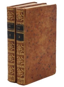 Paris, Defer de Maisonneuve, 1789 ; 2 vol. in-8 (199 x 123 mm), basane marbrée de couleurs, dos lisses ornés de fleurons dorés (Reliures de l'époque). 30 planches figurant les beautés pittoresques du paysage anglois : châteaux, ruines grandioses, rochers et côtes escarpés... Jolies reliures (petits accidents : une coiffe, fente au bas d'une charnière).