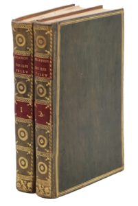 Paris, Maradan, 1793 ; 2 vol. in-8 (190 x 122 mm), veau vert marbré, dos lisses ornés de médaillons dorés, pièces de titre et tomaison de maroquin rouge, filets sur les plats (Reliures de l'époque). Seconde édition de la traduction française, revue par Mirabeau.