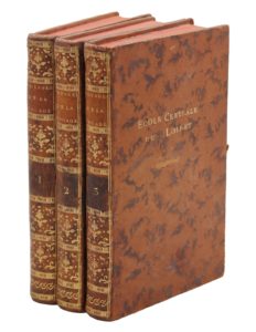 Paris, Dentu, an X-1802 ; 3 vol. in-8 (193 x 118 mm), basane marbrée, dos lisses orné de fleurettes dorées, inscription École centrale du Loiret sur le premier plat et un atlas in-folio (334 x 260 mm) en demi-basane, dos lisse orné de fleurons dorés (Reliures de l'époque). 37 figures sur 29 planches dont 9 cartes ou plans, 13 vues de paysages, monuments ou vestiges archéologiques et 7 planches de médailles (conforme à la table de l'atlas).