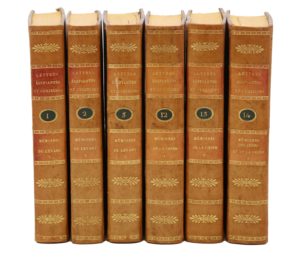 Nouvelle édition des fameuses Lettres envoyées par les jésuites d'Orient, d'Amérique et d'Asie, comptes-rendus de leurs missions mais surtout extraordinaires reportages sur les mœurs des peuples qu'ils tentaient d'évangéliser, les liens qu'ils réussissaient à établir avec les différents pouvoirs, les persécutions dont ils étaient victimes. Elle contient la fameuse lettre du Père d'Entrecolles sur la fabrication de la porcelaine, une autre sur la teinture des étoffes... Jolies reliures parfaitement conservées. Quelques taches inhérentes au papier.