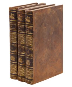 Paris, Poignée, an VIII-1800 ; 3 vol. in-8 (195 x 119 mm) et un atlas grand in-4 (275 x 207 mm), veau raciné, dos lisses ornés de treillis et de fers "au navire" dorés (Reliures de l'époque). 11 cartes repliées.