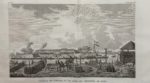 Plan de Batavia, trois cartes (navigation de Batavia à Ambon, l'île de Grand Java, carte du bras occidental du Gange) et 4 planches dont deux vues repl. du château de Batavia, l'élégante façade fréquentée par des Européens et la face arrière, avec le chantier de bois où travaillent les noirs.