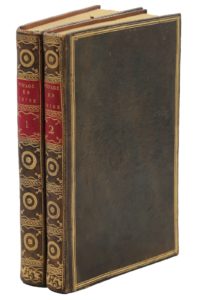 Paris, Garnery, an VI- (1798). 2 vol. in-8 (196 x123 mm), veau vert raciné, dos lisses ornés de rosaces dorées répétées, pièces de titre et tomaison de veau cerise, filets dorés sur les plats (Reliures de l'époque). Première édition française du journal d'André-Everard Van-Braam Houckgeest, ancien directeur de la Compagnie des Indes. Houckgeest avait vécu six ans à Macao et à Canton avant de s'installer aux États-Unis en 1783, enthousiasmé par la Déclaration d'Indépendance. Il s'y enrichit par la culture et le commerce du riz. C'est donc un commerçant aguerri et un connaisseur de la Chine que la Compagnie des Indes envoie en 1794 vers QuienLong pour tenter de conclure un traité de commerce. Le Journal couvre le voyage de Canton à Pékin "en traversant des parties de la Chine où le pas d'un Européen n'a jamais été empreint" et sa réception dans la Cité Interdite. Très bel exemplaire.