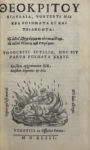 THÉOCRITE — Εἰδυλλια... Idyllia, hoc est parva poemata xxxvi.