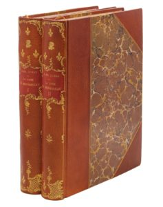 Paris, Calmann Lévy, 1903. 2 volumes in-4, bradel demi-maroquin fauve, dos lisse orné de heaumes et de fleurs de lys dorées, tête dorée, non rogné, couverture (Ch. Meunier). Édition illustrée de 250 compositions de Maurice Leloir gravées sur bois par Jules Huyot.