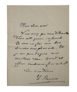 Louis RANVIER (1835-1922). B.A.S. "L. Ranvier". S.l.n.d. 1 page in-16. Il le félicite d'avoir pu se "débrouiller dans cette guerre infernale."