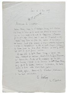 Lettre de recommandation en faveur de Mademoiselle Renée Mony, dont la sœur avait épousé le neveu de Pasteur, Maurice Loir, lieutenant de vaisseau.... Madame Mony, veuve de l'intendant Mony, était titulaire d'un bureau de tabac que lui avaient fait obtenir les services rendus par son mari, mort à la suite de l'expédition de Tunisie (...). Madame Mony laisse une fille non mariée et sans fortune. Une demande vient d'être adressée à l'administration des finances à l'effet de transporter sur la tête de Mlle Renée Mony le bureau dont sa mère était titulaire et dont le produit net était de 900 francs environ. La sœur aînée de Mlle Renée Mony a épousé mon neveu, lieutenant de vaisseau, chevalier de la Légion d'honneur, Mr Maurice Loir. Telle est la circonstance qui me fait porter beaucoup d'intérêt à la demande de Mlle Renée Mony...