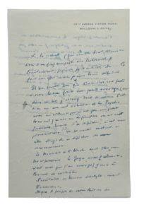 S.l.n.d. [1949-50]. 1 page 3/4 in-8 à son adresse [19bis avenue Victor Hugo. Boulogne S/Seine].