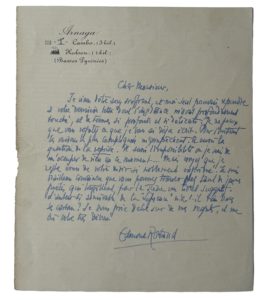 ROSTAND (Edmond)(1868-1918) — L.A.S. "Edmond Rostand". S.l.n.d. 1 page in-8, à son adresse basque.