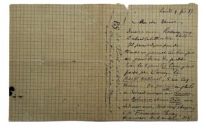 VERLAINE (Paul)(1844-1896) — L.A.S. "P.V." à son éditeur, Léon Vanier. 4 février 1887. 3 pages petit in-12 sur papier quadrillé.