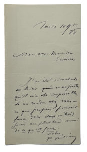 VERLAINE (Paul)(1844-1896) — Né à Metz (Moselle). 1844-1896. Écrivain et poète français. L.A.S. « P. Verlaine » à l’éditeur Albert Savine. Paris, 10 novembre 1888.1 p. petit in-12. , , .