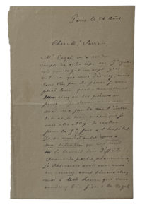 Paris, 28 août (sans date, vers 1888). 1 p. 3/4 in-8. Belle lettre.