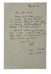 VERLAINE (Paul)(1844-1896) — Né à Metz. 1844-1896. Poète. L.A.S."P. V." à "Ma chère amie" (Eugénie Krantz). Londres, 30 (novembre 1893). 1 page in-8. Rare envoyée de Londres.