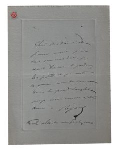 Jean RICHEPIN (1849-1926). L.A.S. "Aug Jean Richepin" à J.J. Frappa. La Falaise au Val-André, 3 septembre s.d.1 page in-8. Papier de deuil. Son retour à Paris n'étant prévu que vers le 20 septembre, il craint que leur rendez-vous ne soit trop lointain. "Ne pourriez-vous me dire en quelques lignes de quoi il s'agit ?" Il l'assure qu'il a "toujours aimé à lire Comoedia" où il a longtemps écrit et qu'il le verrait avec plaisir nommé à sa direction.