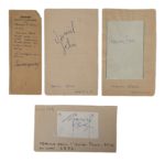 3 signatures A. (Marina Vlady, François Périer et Daniel Gélin) sur fragments de papier. On joint un coupon de correspondance signé "Paul Marguerite". 9 juin 1909. Règlement d'une facture.