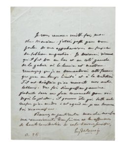 DELACROIX (Eugène) — Né à Charenton-Saint-Maurice. 1798-1863. Peintre, aquarelliste, dessinateur et lithographe français. L.A.S. « Eug. Delacroix ». S.l.n.d., ce 26. 1 page in-8
