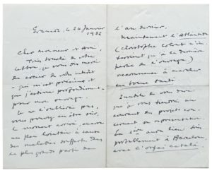 FALLA (Manuel de) — Né à Cadix. 1876-1946. Compositeur espagnol. L.A.S. "Manuel de Falla". Grenade, 24 janvier 1932. 3 pp. 1/2 in-8.