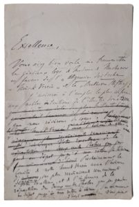 LISZT (Franz) — Né à Doborján (Hongrie). Compositeur et pianiste virtuose. Brouillon de L.A.S. "F L" à "Excellence" (Charles-Alexandre de Saxe-Weimar-Eisenach ?). S.l.n.d. 1 page 3/4 in-8.