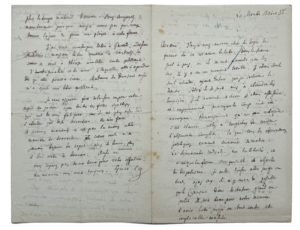 L.A.S. "Emile Ollivier" à "Mon cher Maître". Florence, 18 octobre 1857. 1 page in-8. Il lui annonce avoir rencontré son fils et son épouse pour lesquels il augure beaucoup de bonheur. "Maintenant un mot de moi, je me marie aussi avec la fille de Liszt... je me marie, par aucune autre raison que celle ci qu'après avoir voyagé un mois avec elle, je me suis aperçu que je l'aimais. Qu'après être resté deux mois dans sa société, j'ai vu clairement qu'elle réunissait tous les dons de la femme [...]. Vous, mon maître, vous vous associerez à ma joie. Si ce que vous me donnez à cette heure en affection égale ce que je vous donne toujours, je ne demande rien de plus."