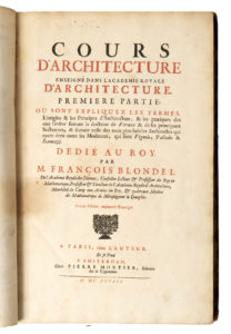 BLONDEL (Nicolas-François). — Cours d'architecture enseigné dans l'Académie Royale d'architecture où sont expliquez les termes, l'origine et les principes d'Architecture […]. — A Paris, Chez l'auteur et se vend à Amsterdam, chez Pierre...