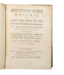 BRISEUX (Charles-Étienne)]. — Architecture moderne ou l'art de bien bâtir pour toutes sortes de personnes […]. — A Paris, chez Claude Jombert, 1728. — 2 volumes in-4°, veau, pièces de titre maroquin rouge, armories au centre du premier...