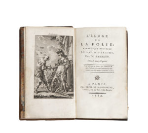 ÉRASME. — L'Eloge de la Folie. — Traduction nouvelle par M. BARRETT. — A Paris, Chez Defer de Maisonneuve, 1789. — In-12, basane marbrée, dos lisse orné, tranches marbrée (reliure de l'époque).