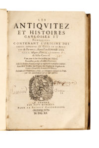 FAUCHET (Claude). • Les Antiquitez et histoires gauloises et françoises. — Contenant l'origine des choses advenues en Gaules et es Annales de France, depuis l'an du monde MMM.C.C.C.L. jusques à l'an IX.C.LXXXVII de Jesus Christ […]. ••...