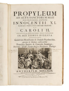 HENSCHENIO (Godefrido) & PAPEBROCHIO (Daniele). — Propyleum ad acta sanctorum maii sub felicissimis auspiciis Innocentii XI. — Romani Pontificis optimi maximi et Caroli II. — Hispaniarum Indiarumque Regis Catholici in sex tomos digesta....