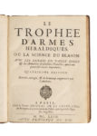 [HÉRALDIQUE - ROYER de PRADES (Jean)]. — Le Trophée d'armes heraldiques, ou la Science du blason […]. — A Paris, Chez la Veuve Nicolas de La Coste, 1672. — Petit in-4°, veau blond glacé, fleuron aux angles et au centre, dos à nerfs orné...