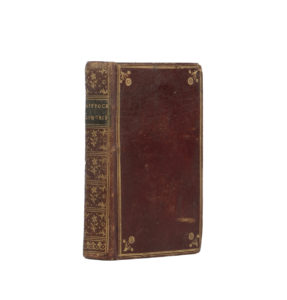 — In-16, maroquin rouge, filets dorés encadrant les plats, fleurons aux angles, dos lisse orné, tranches dorées, gardes de papier dominoté (reliure de l'époque). Texte en grec et latin. Coins émoussés, reliure légèrement frottée.
