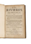 Denombrement des Villes, Ponts, Passages, Batailles qui ont esté données sur leurs rivages, & autres curiositez remarquables dans chaque Province. •• Les Rivieres de France, qui se iettent dans la mer Mediterranée. — A Paris, Chez François Clousier, 1644. — 2 parties en 2 volumes in-12, maroquin olive, triple filet doré encadrant les plats, dos à nerfs orné, tranches dorées (reliure du XVIIIe s.).