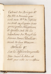 [MANUSCRIT - MAINTENON (Madame de)]. — « Extrait des Avis que Me de M[aintenon] a donnés par écrit aux Rses de St Loüis ou sont expliquées leurs principales obligations et quelles ont été les intentions du Roy, et les siennes dans...