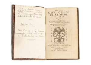 [MÉDECINE - CELSE]. — Avrelii Cor. Celsi De Re Medica libri octo. Q. Sereni medicinale Poëma. — Rhemnii Poëma de Pond. & mensuris. — Cum adnotationibus & correctionibus R. Constantini. — Lyon, Guillaume Rouillé, 1566. — In-12 (104 x 164...