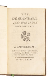 [RICHER (Adrien)]. — Vie de Jean-Bart, chef d'escadre sous Louis XIV. — A Amsterdam, Et se trouve à Paris, Chez Belin, Libraire, 1781. — Petit in-12, basane, dos lisse orné (reliure fin XIXe s.).