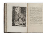 Belle édition ornée d'un portrait de Rousseau d'après LA TOUR gravé par SAINT-AUBIN, de douze fleurons sur les titres de MOREAU, CHOFFARD et LE BARBIER, de 28 planches gravées d'après MOREAU, quatorze planches repliées dont treize de musique.