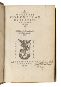 [RUSTICA]. • COLUMELLE (Lucius Junius Moderatus). — De Re Rustica. Libri XII […]. •• PALLADIUS. — De Re Rustica. Libri XIIII. ••• GEORGIUS ALEXANDRINUS. — Enarrationes vocum priscarum in libris de Re rustica […]. — Lugduni,...