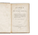 PUJOULX (Jean-Baptiste). Paris à la fin du XVIIIe siècle, ou esquisse historique et morale, des monumens et des ruines de cette Capitale […]. A Paris, Chez Brigitte Mathé, An IX - 1801. In-8°, basane marbrée, dos lisse orné (reliure de l'époque). Petit manque au dos.