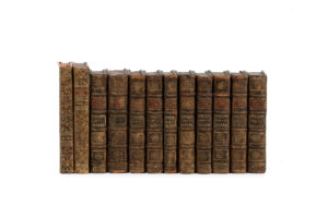 Dos frotté, petit manque aux coiffes des tomes 1 et 4, piqûre de ver au tome III, petite usure aux coins.